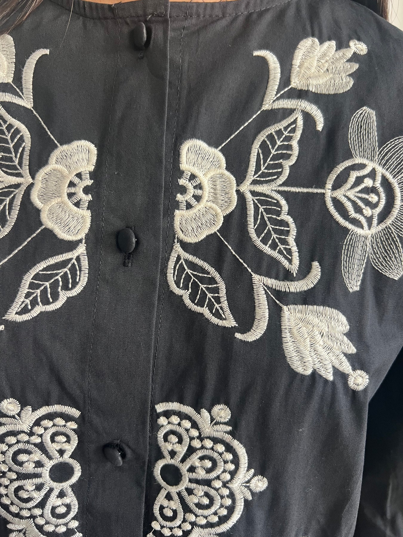 Esta camisa es una joya de temporada que destaca por sus espectaculares bordados florales, tanto en el frontal como en las mangas. Un diseño elegante, original y muy versátil 🌿.