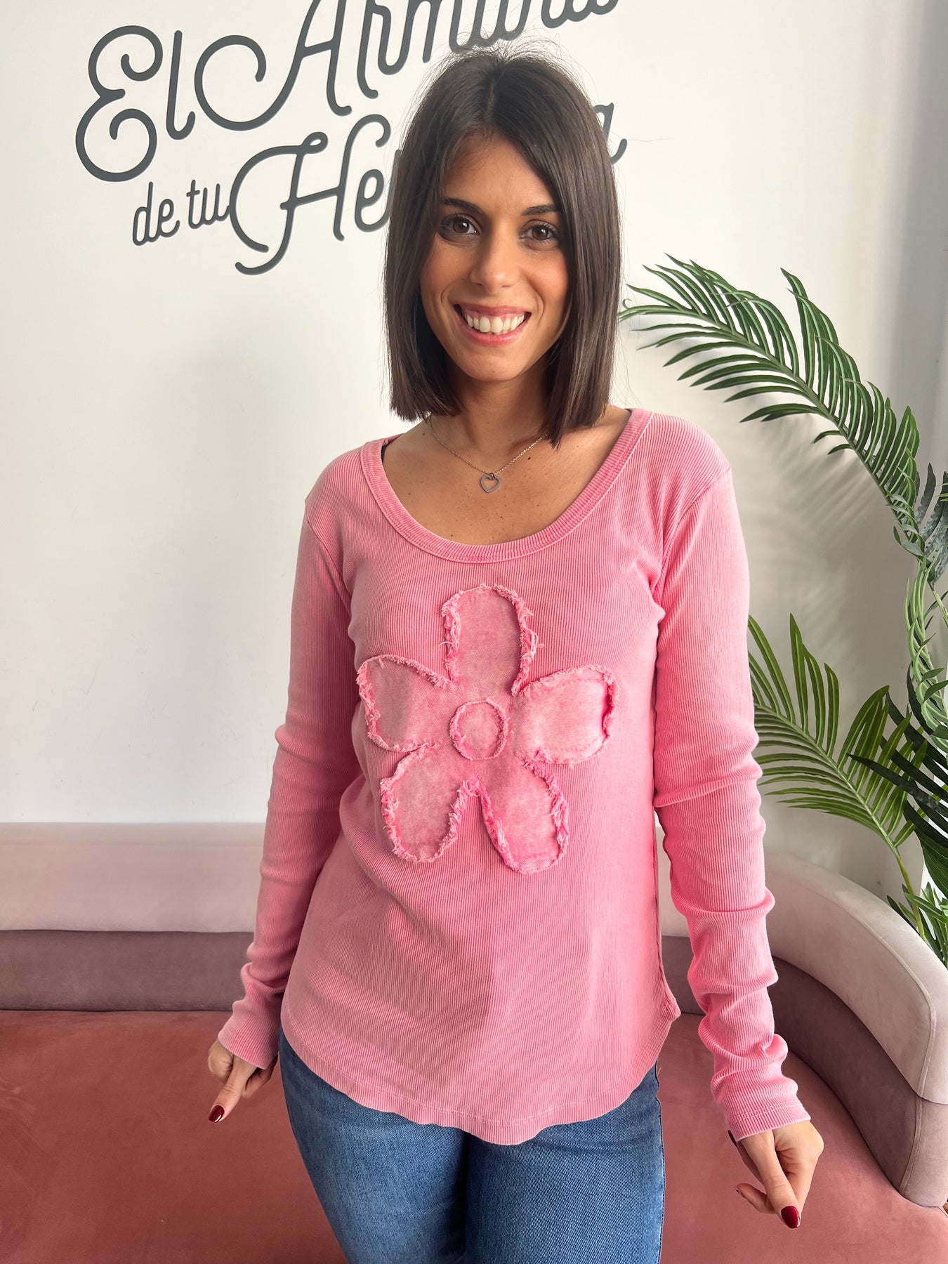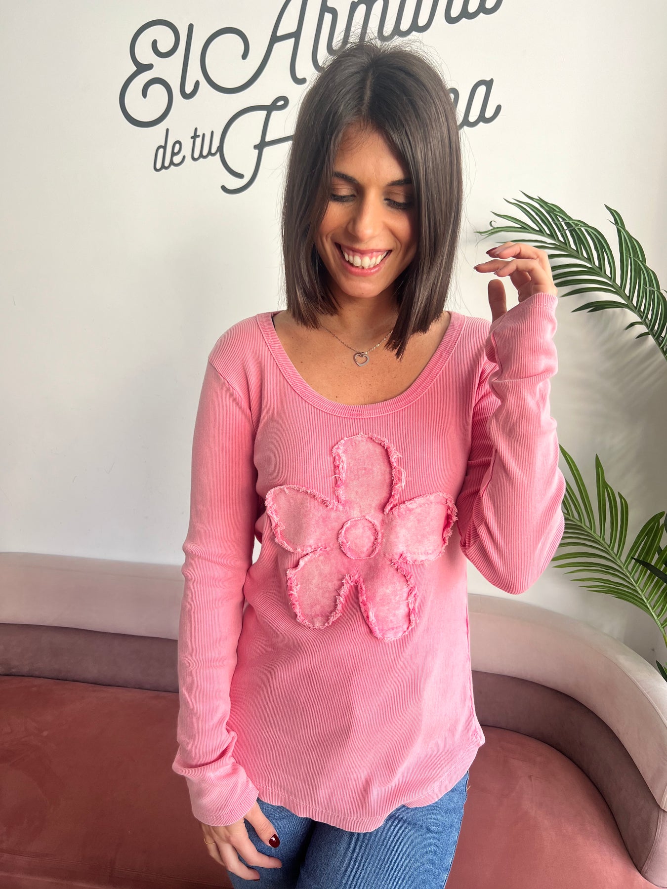 Es una prenda muy versátil: perfecta con vaqueros para un look casual o con prendas más arregladas si quieres darle un punto diferente 🌸.