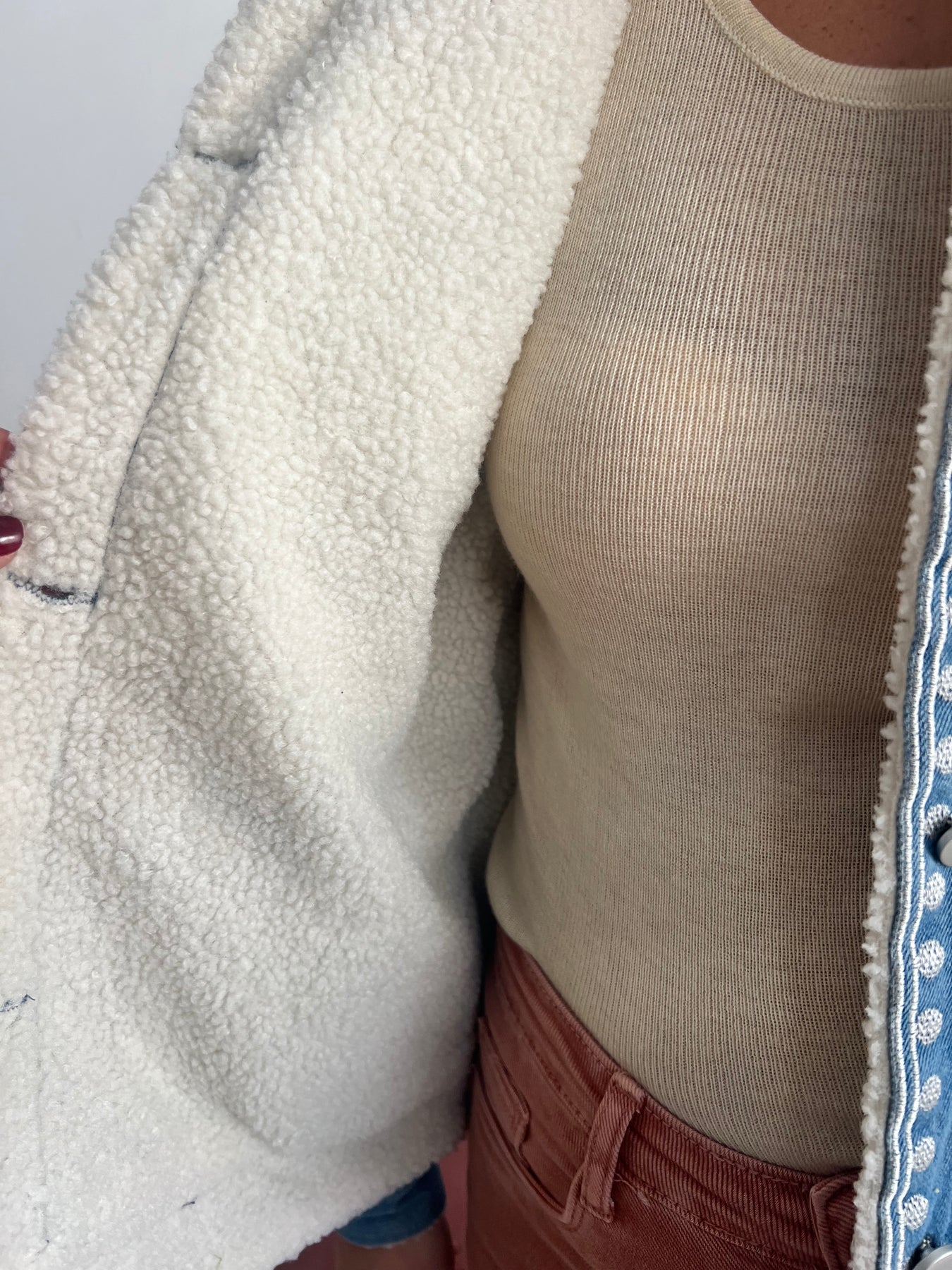 Está completamente forrado por dentro con tejido de borreguito, incluido en las mangas, lo que lo convierte en una prenda súper calentita y agradable para los días de frío ❄️🤍