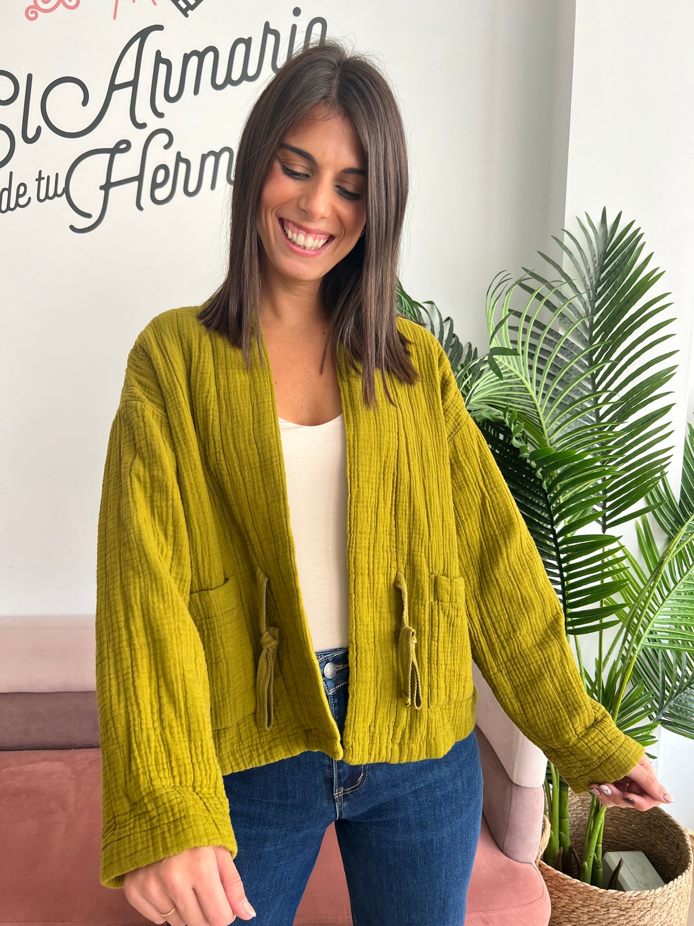 Una chaqueta que combina comodidad, estilo y ese toque desenfadado que tanto nos gusta 😍. Confeccionada en tejido tipo muselina 💫, suave, ligero y con textura arrugada que le aporta un aire relajado y bohemio.