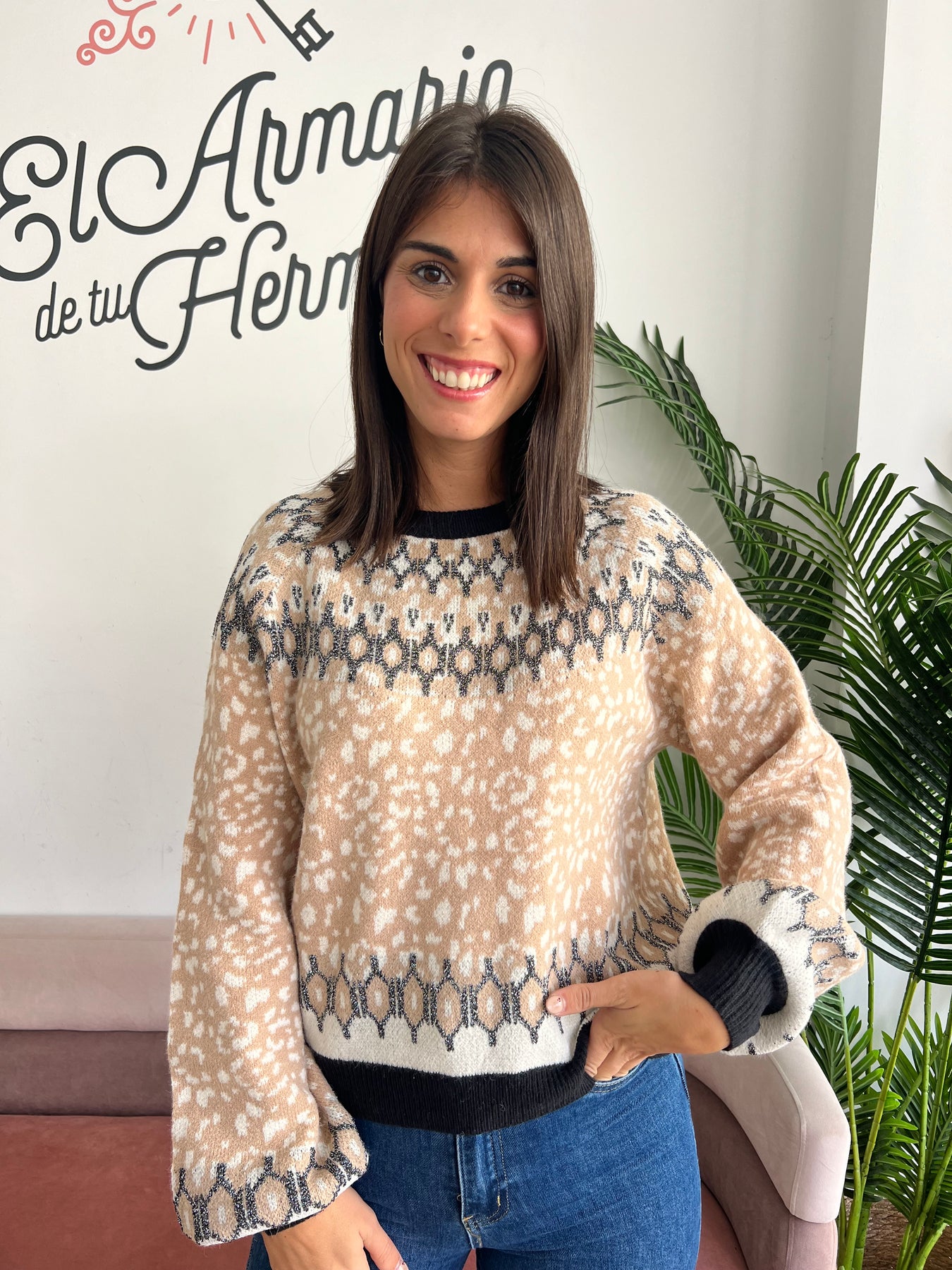 ✨ Dale un toque atrevido y estiloso a tus looks con este jersey de estampado animal en tonos grises y negros 🤍🖤. De tacto suave y agradable, esta prenda combina un diseño original con detalles geométricos que lo hacen único. Su corte cómodo y relajado lo convierte en una opción ideal para el día a día sin perder estilo 😍.