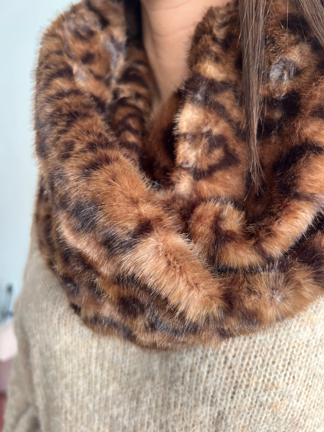 ¡Amor a primera vista! ❤️ Este cuello de pelo sintético con estampado animal print es el accesorio ideal para añadir un toque cálido y sofisticado a cualquier look de invierno. Su textura ultrasuave y mullida envuelve el cuello con una sensación de abrigo deliciosa, mientras el diseño de leopardo lo convierte en una pieza con personalidad propia 🧣🔥