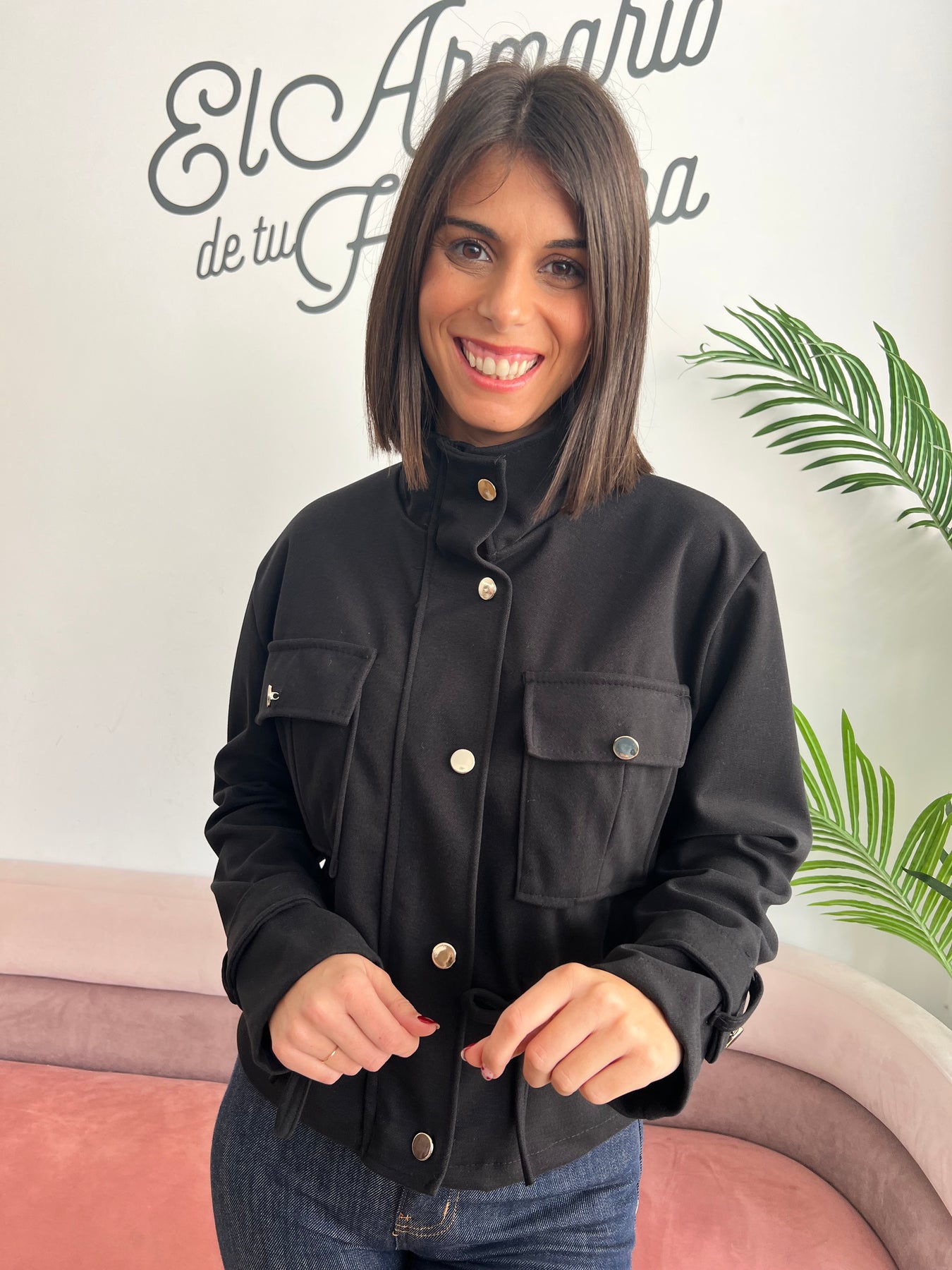 Chaqueta de estilo casual y muy favorecedora, ideal para entretiempo. Diseño con bolsillos delanteros reales y cierre frontal con botones, que le aportan un toque práctico y actual.