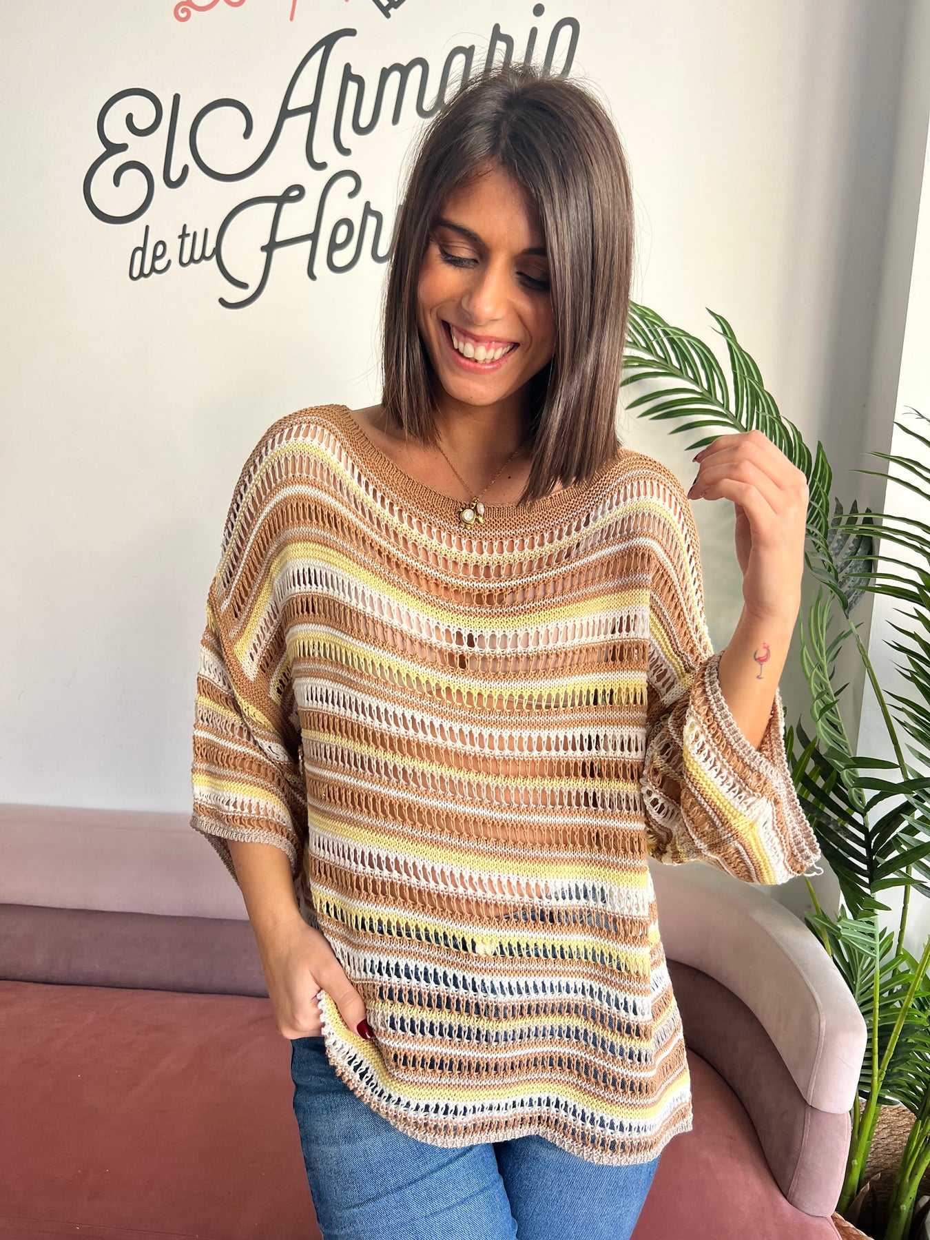 Es amplio, cĂłmodo y con caĂda fluida, perfecto para llevar con vaqueros, pantalones claros o incluso encima de un top lencero. Las mangas amplias le dan ese toque diferente que hace que no pase desapercibido âš