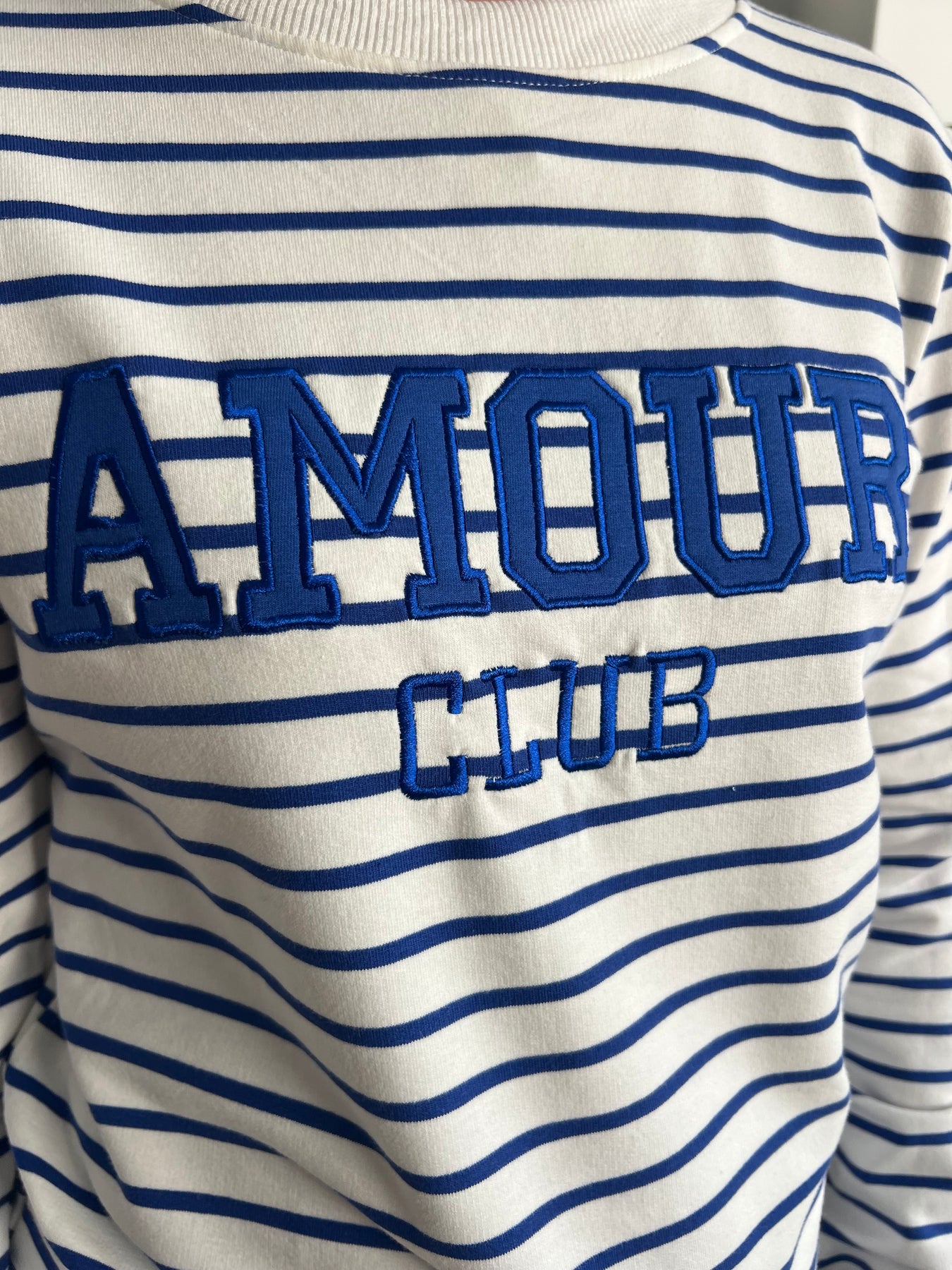 ✨ Detalle bordado “AMOUR CLUB” en relieve