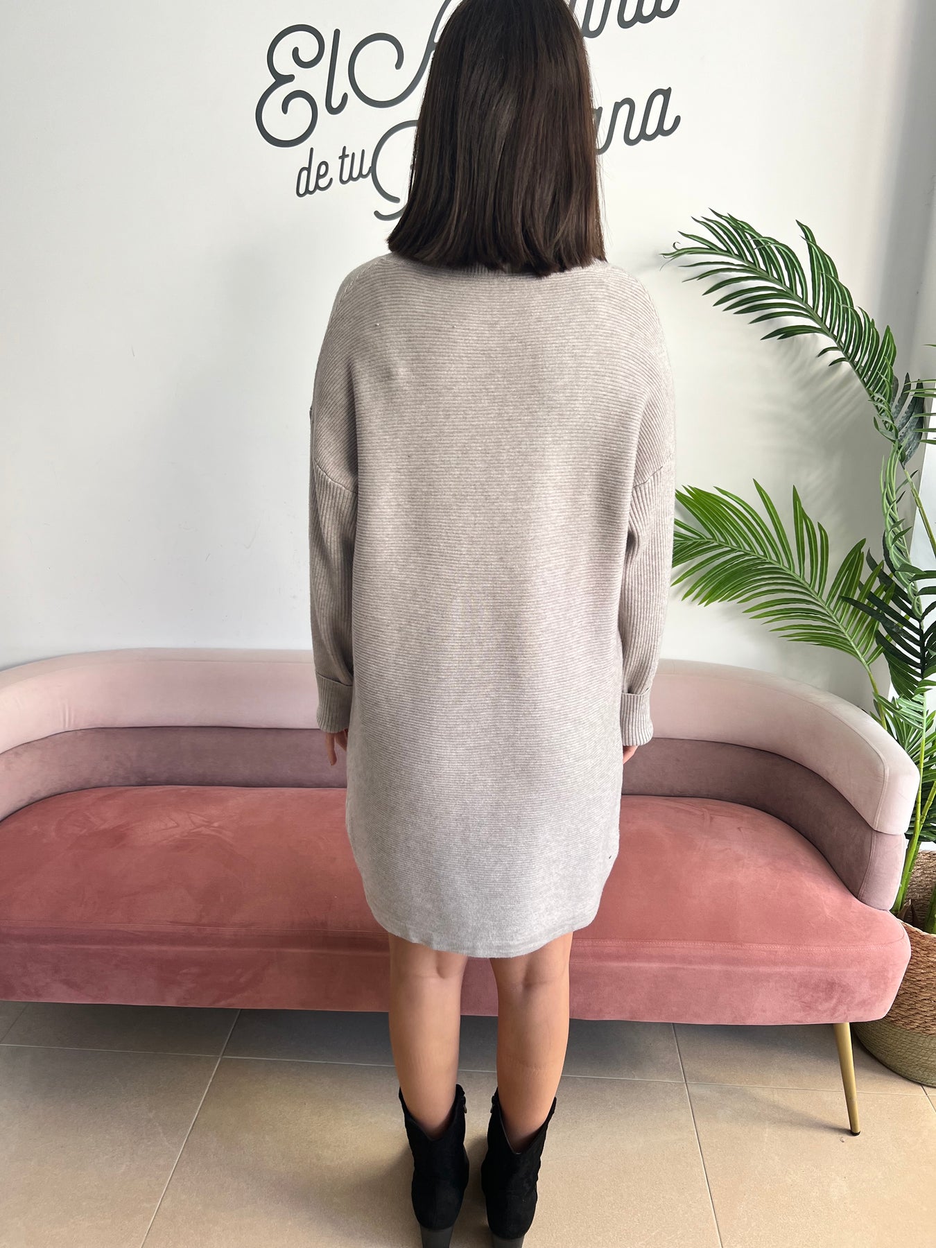 Cómodo, cálido y con un toque sofisticado, este vestido tipo jersey es esa prenda versátil que te salva cualquier look de otoño-invierno 🍂. Su diseño de punto grueso y cuello vuelto aporta abrigo sin renunciar al estilo, y su corte recto hace que siente genial sin marcar, adaptándose a diferentes tipos de cuerpo.