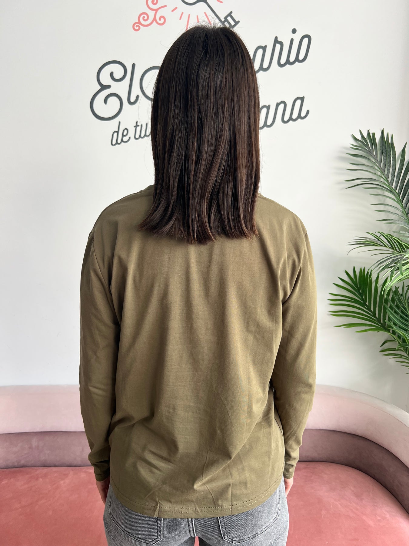 Tiene un corte recto, favorecedor y relajado, con manga larga y cuello redondo. El tejido es suave, agradable y muy cómodo para el día a día. Combínala con vaqueros, pantalones negros o incluso con falda para un look más urbano 🖤