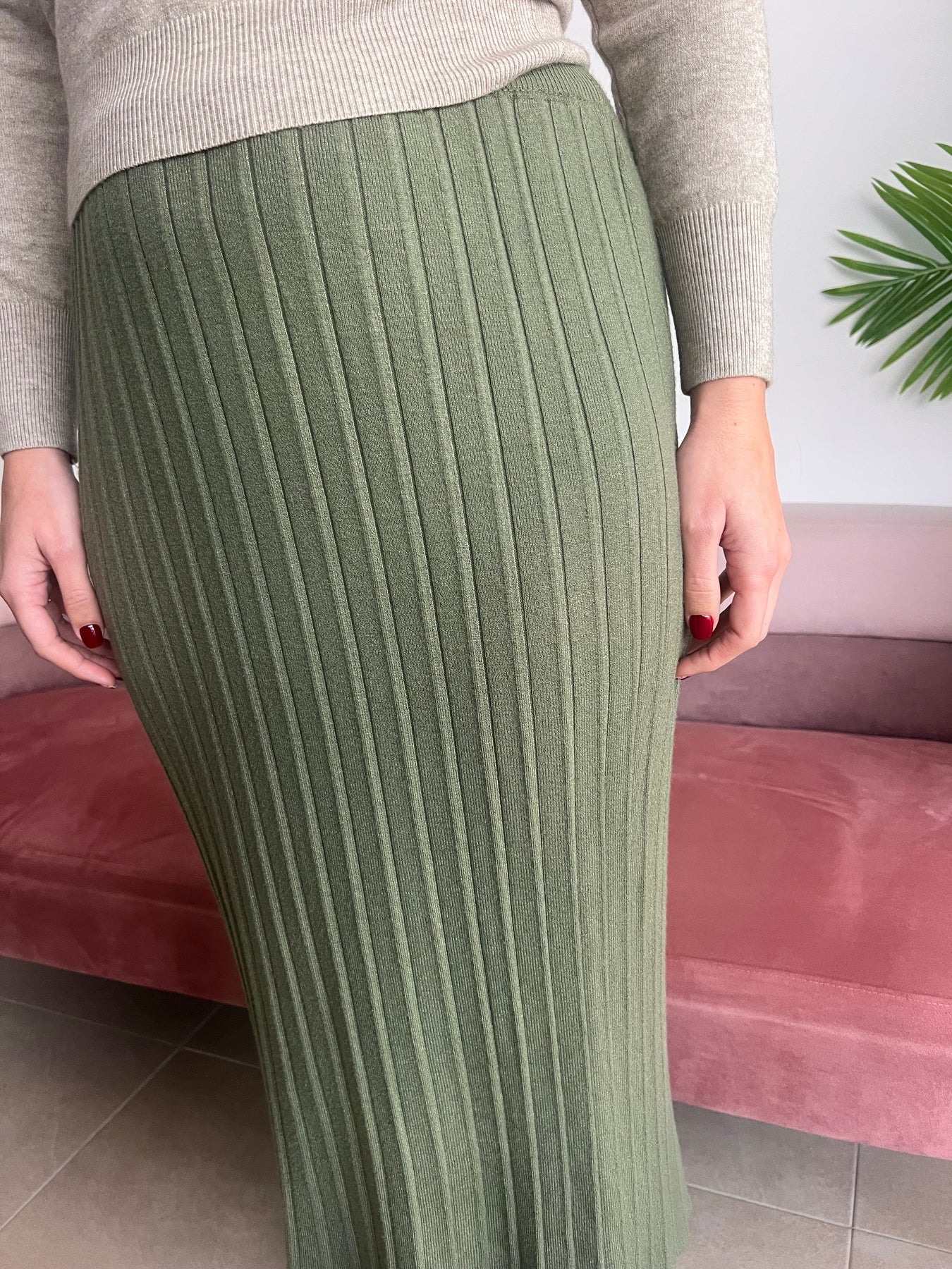 Falda de punto con diseño plisado, cómoda, suave y con una caída preciosa que sienta increíble. Se adapta genial al cuerpo sin marcar y es perfecta para llevar tanto con jerseys ajustados como con prendas más sueltas.
