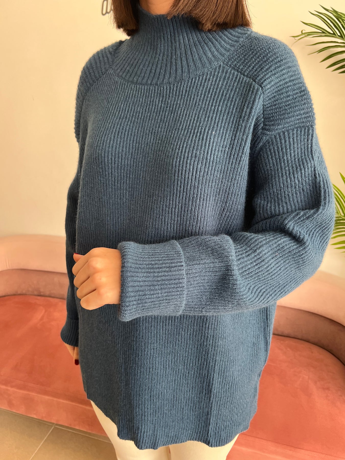 El cuello subido aporta un toque elegante y abriga sin agobiar, perfecto para los días más frescos 🍂. Su punto es suave y gustoso, ideal para llevar durante horas con total comodidad 🌿. Las mangas ligeramente amplias le dan movimiento y un aire actual que favorece muchísimo 💫