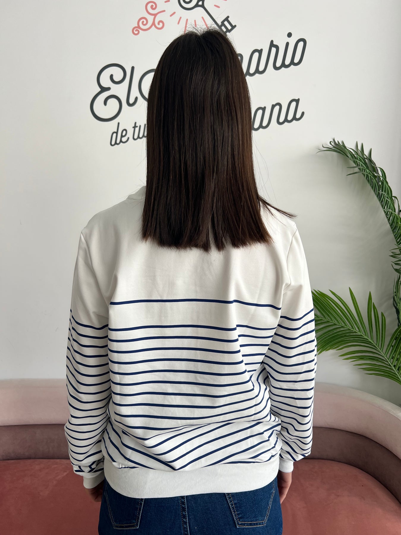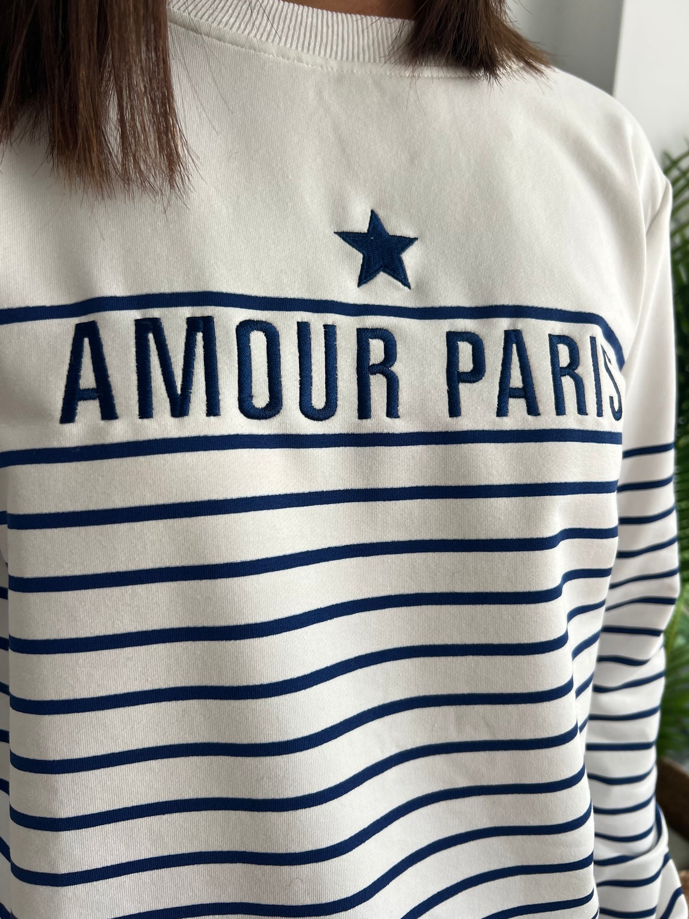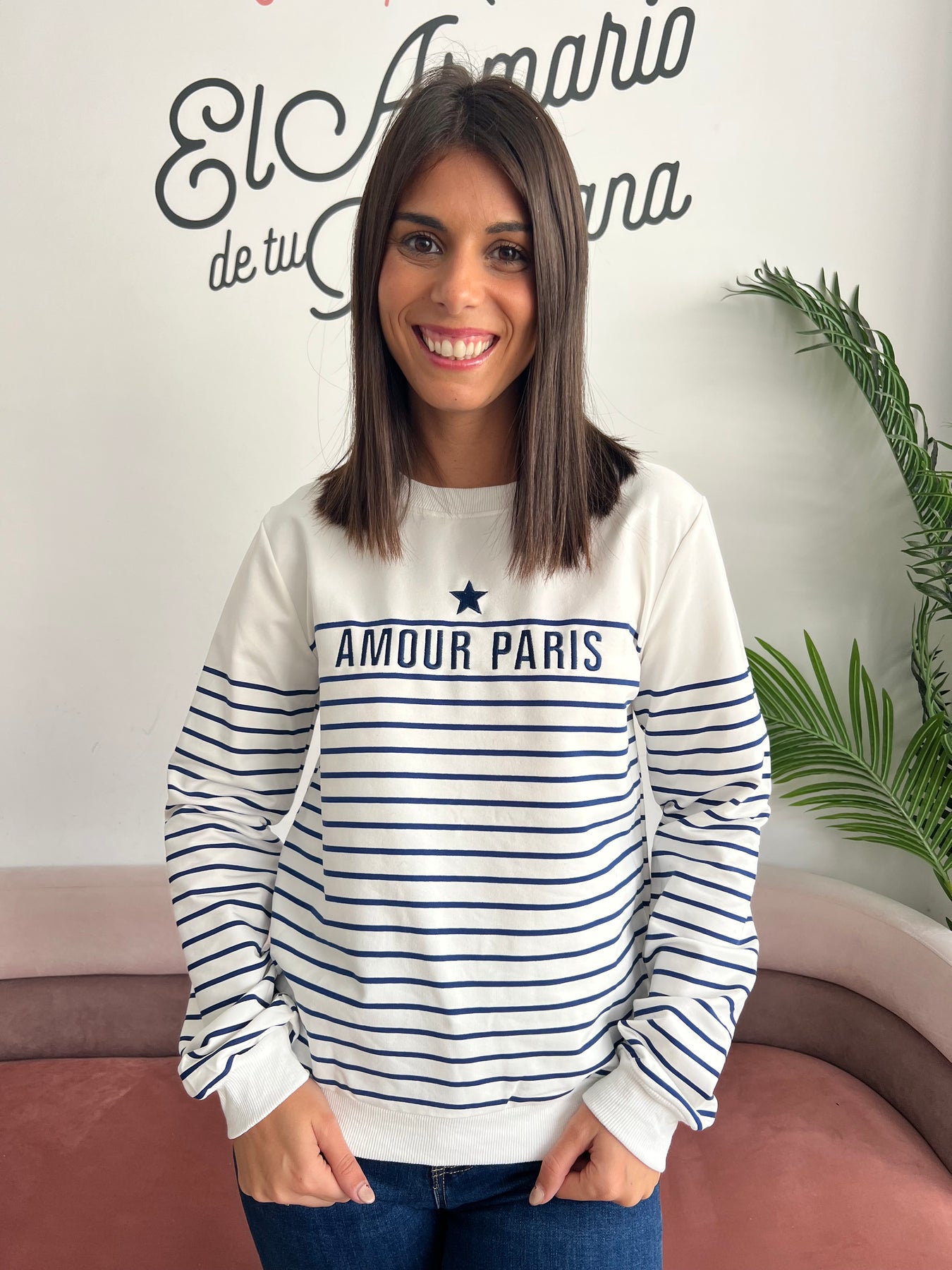 ¡Dale un toque parisino a tus looks con esta sudadera tan estilosa y cómoda! 💫 Con su diseño a rayas finas y el bordado “Amour Paris” en el pecho acompañado de una estrellita ⭐, es ideal para esos días en los que quieres ir casual pero con mucho rollo. El tejido es suave, agradable al tacto y muy gustoso de llevar 💕