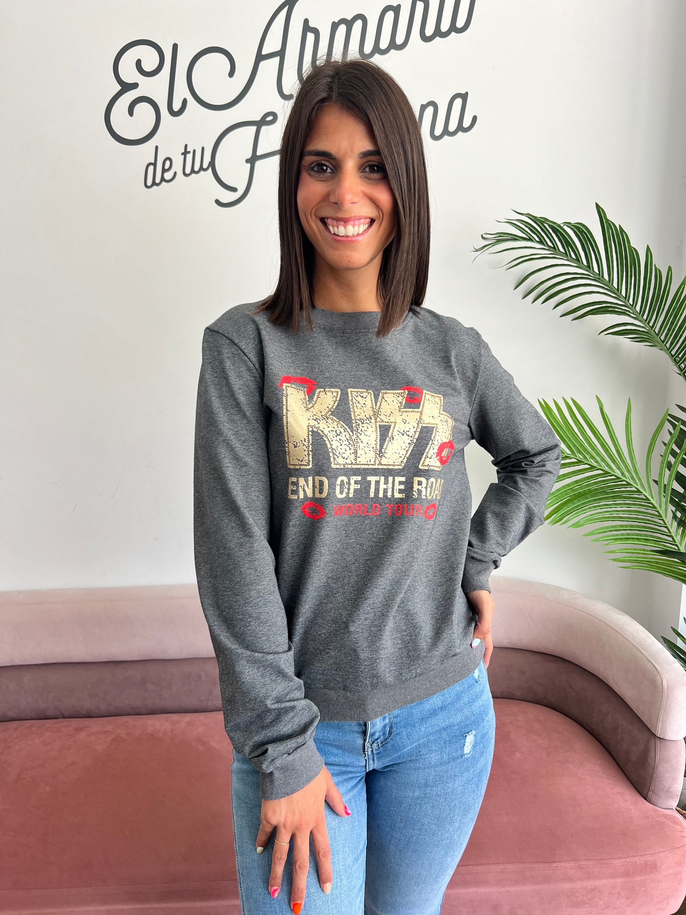 Si buscas una prenda cómoda pero con mucha actitud, esta sudadera es para ti. Inspirada en el estilo de los grandes conciertos, destaca por su estampado central con efecto desgastado, el nombre KISS en grande y detalles de labios que le aportan un toque atrevido y divertido.
