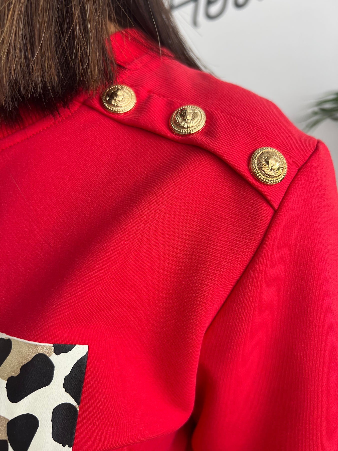 ✔️ Detalle especial: botones dorados decorativos en el hombro que elevan el diseño y la hacen diferente a cualquier sudadera básica.