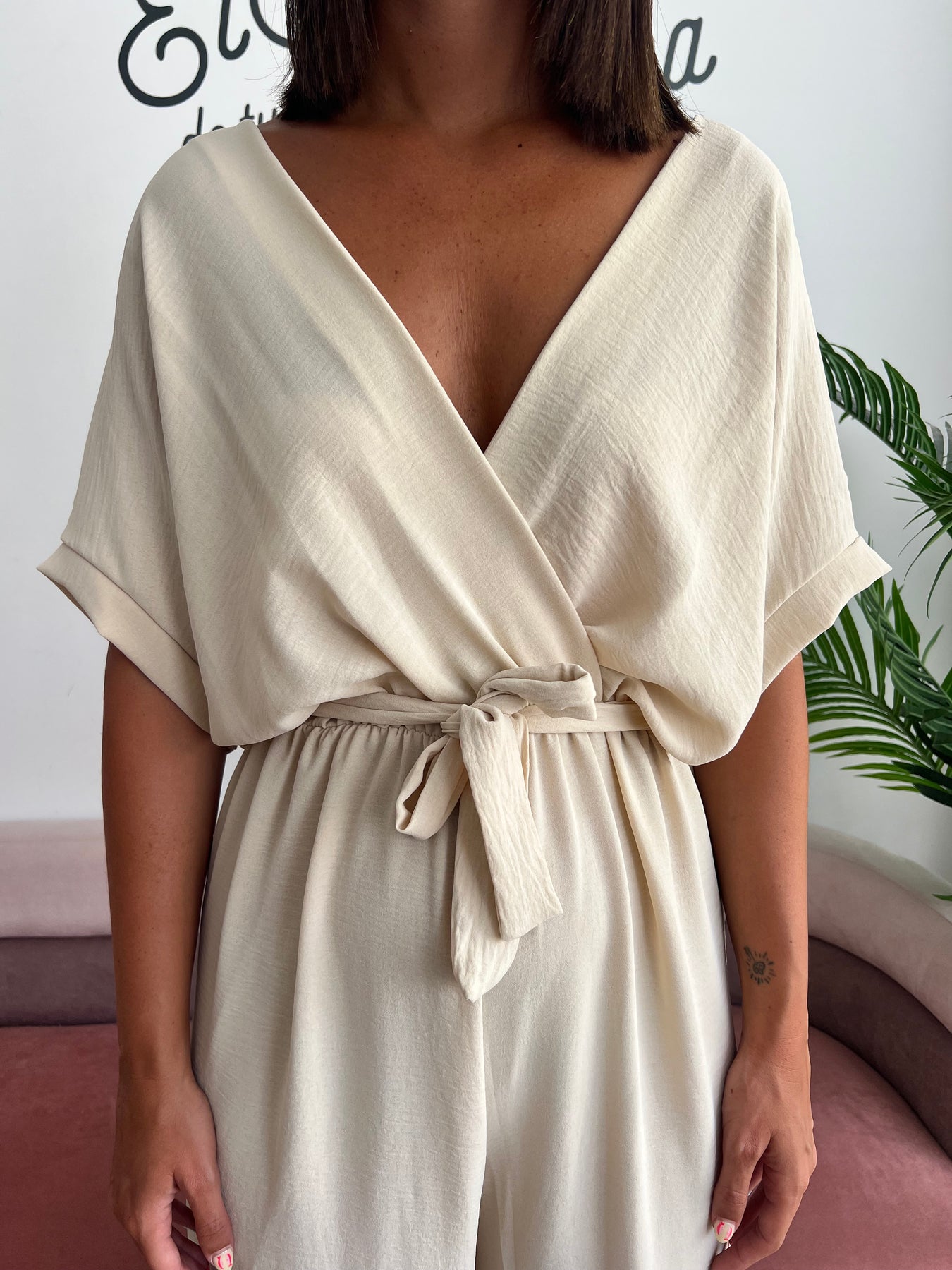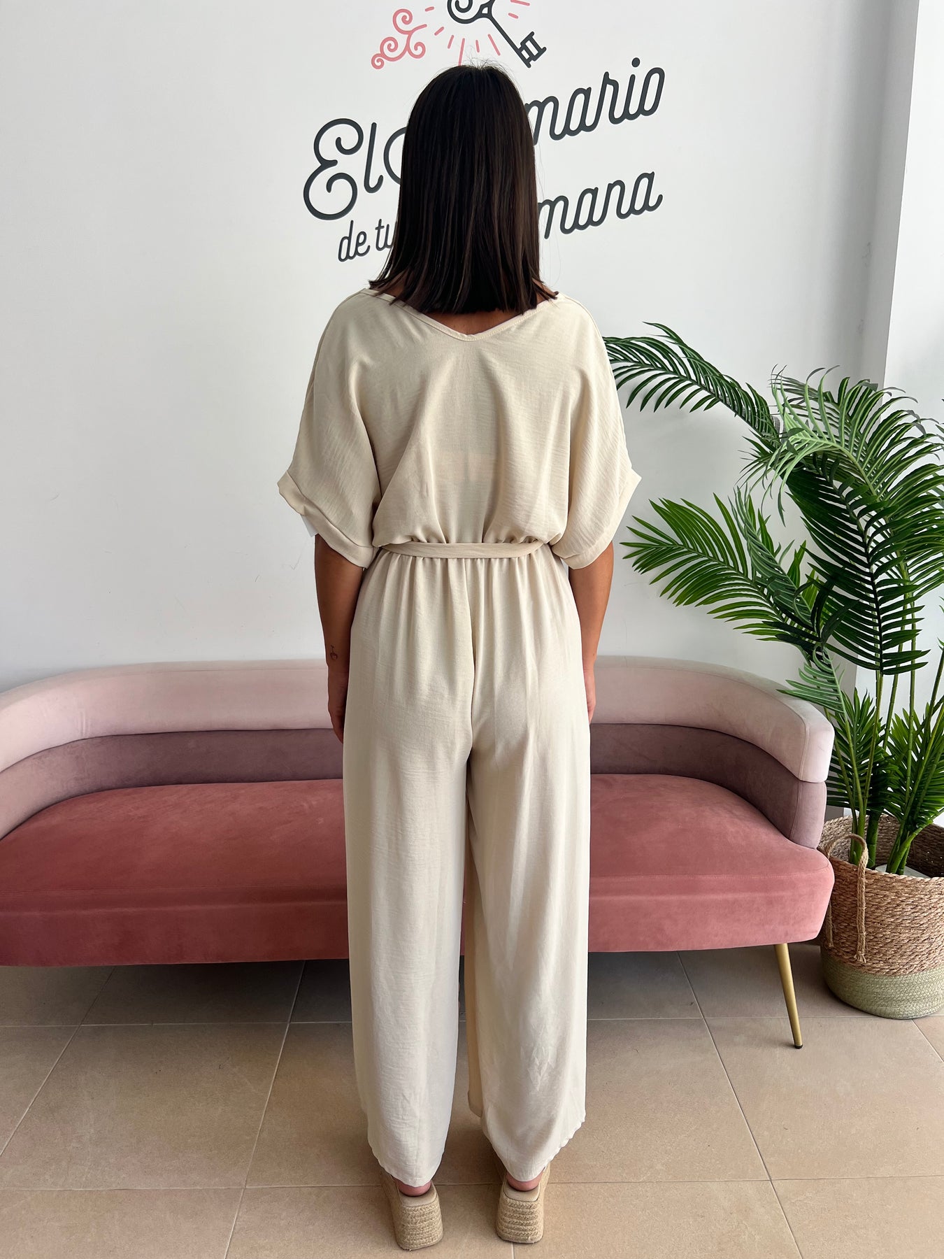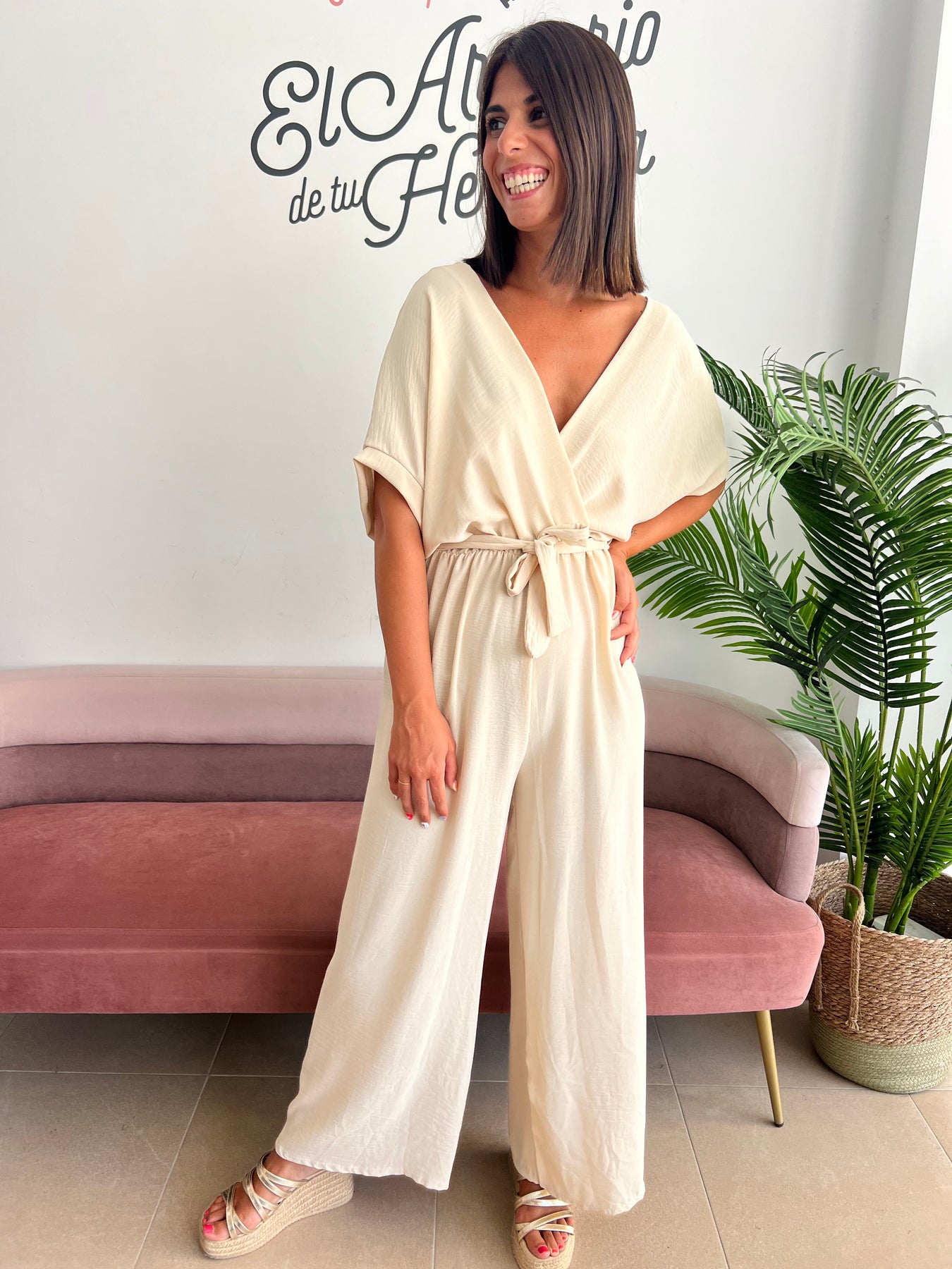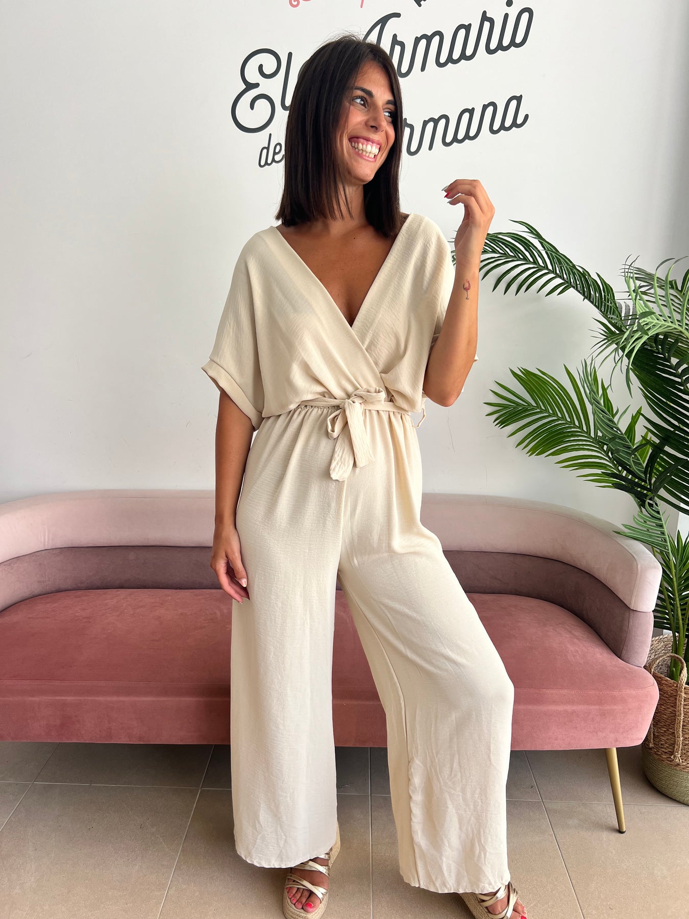 ¿Buscas una prenda fresca, cómoda y con mucho estilo? 👗 Este mono fluido en tono beige es perfecto para esos días en los que quieres ir elegante sin renunciar a la comodidad