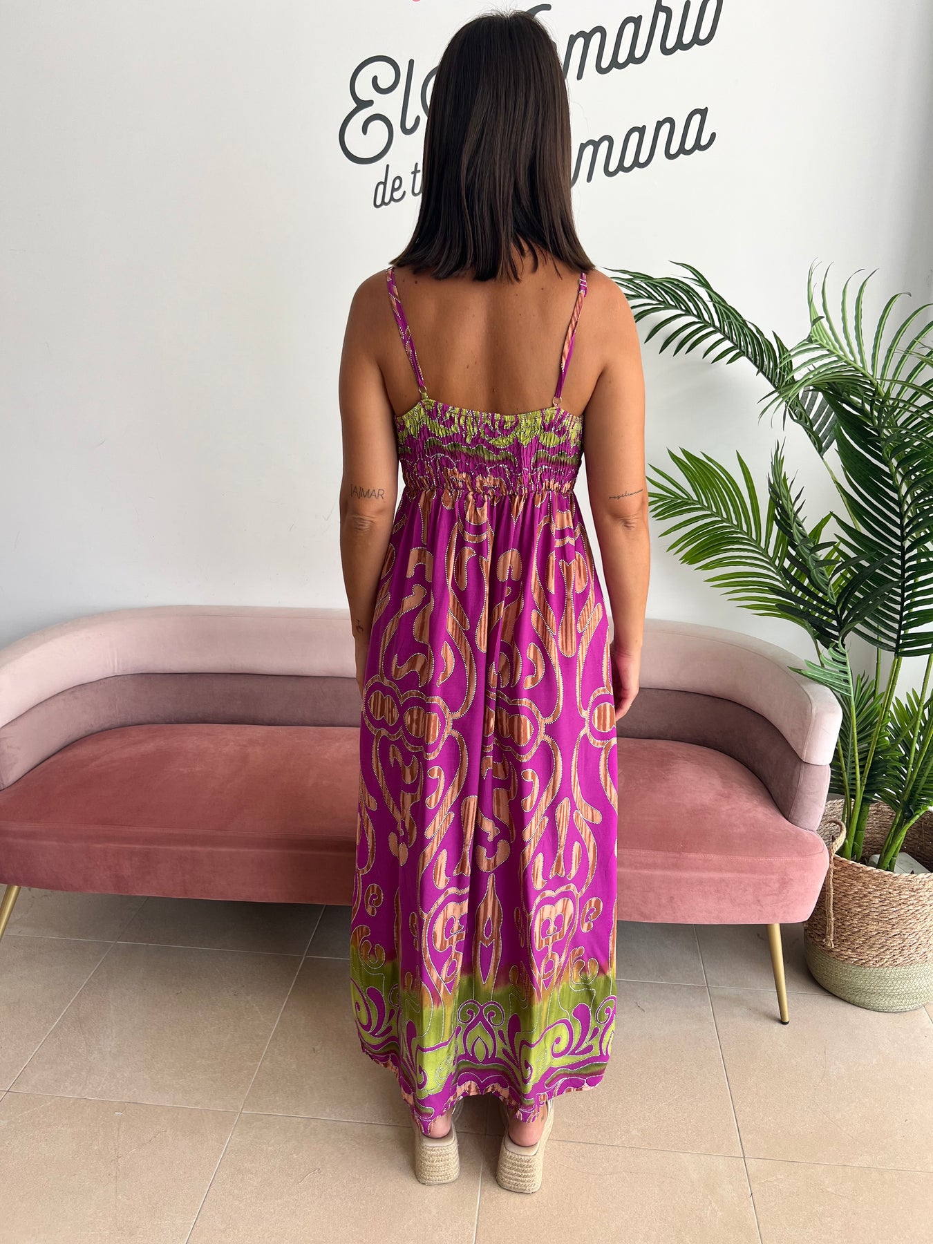 Este vestido no pasa desapercibido. Tiene esa mezcla perfecta entre elegancia relajada y toque boho que lo convierte en un imprescindible para tus planes de día o de noche.