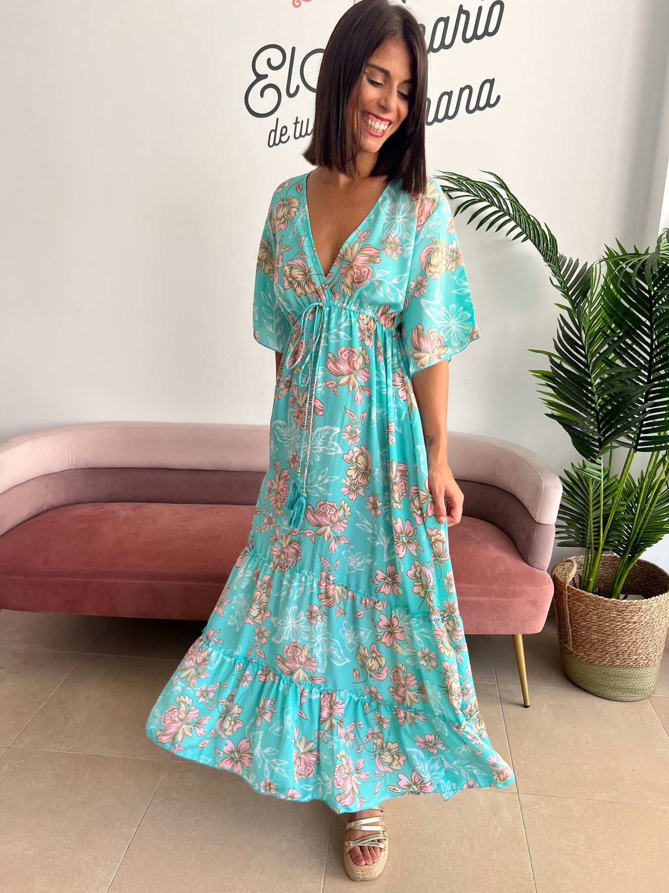 Se adapta perfectamente desde una talla S hasta una L/XL gracias a su corte suelto y su cinturilla elástica ajustable 🎀. Un vestido que grita vacaciones, alegría y libertad 🌴🌞
