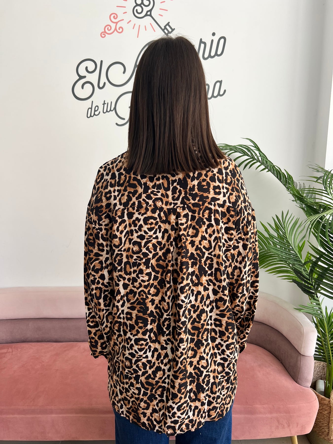 🔥 Camisa animal print que no pasa desapercibida 🔥 Su diseño fluido, con corte recto y botones delanteros, la convierte en una prenda versátil que puedes llevar tanto para un look casual con vaqueros como para un outfit más atrevido con falda o pantalón elegante.