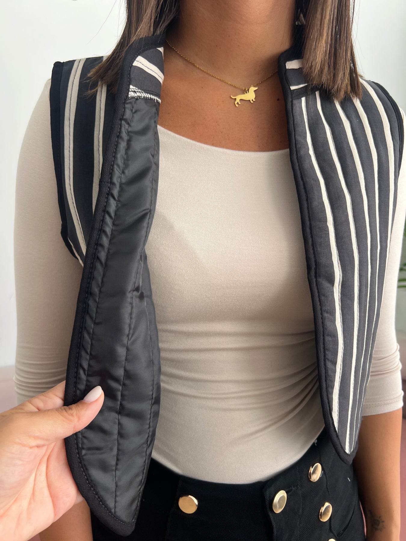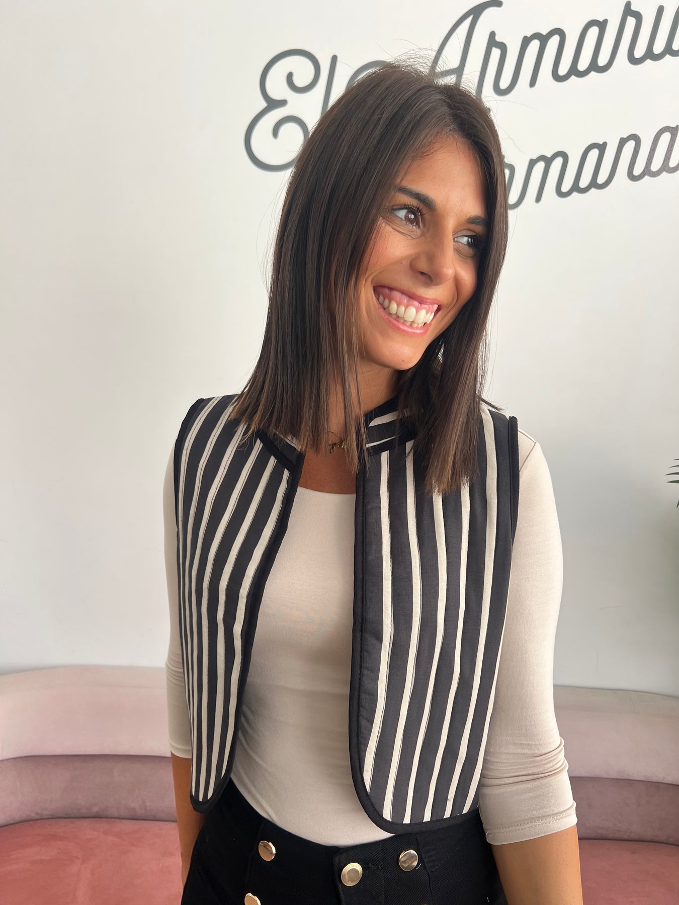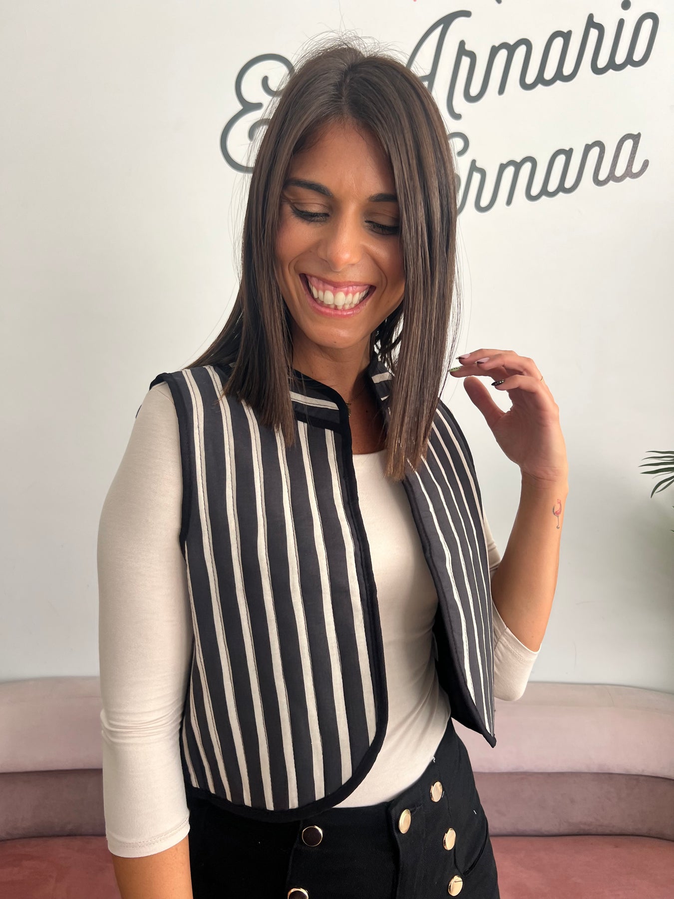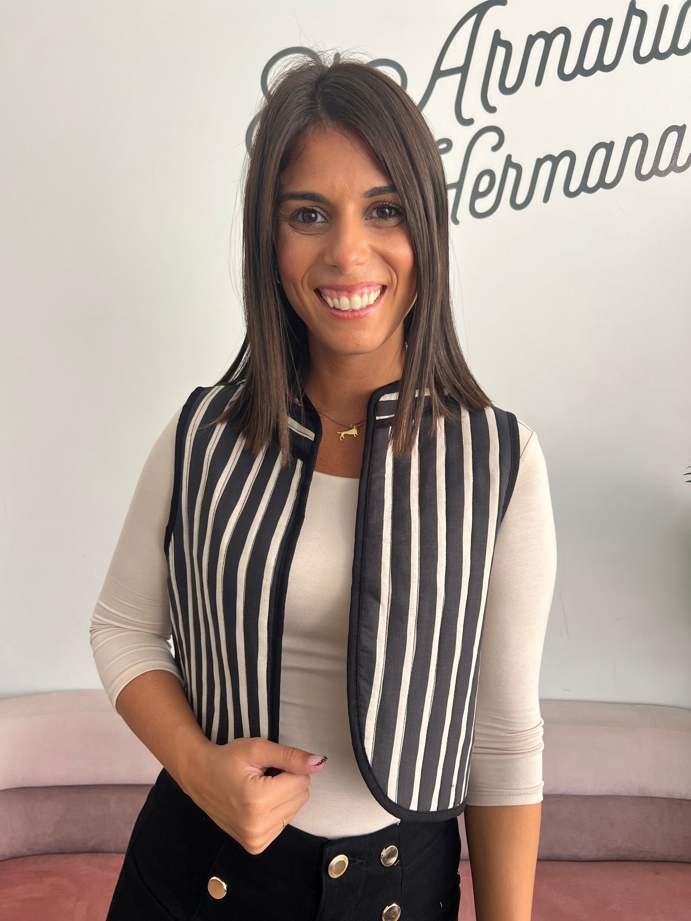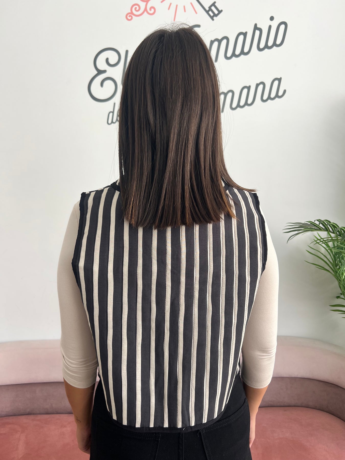 Un chaleco versátil, moderno y con un diseño que nunca pasa de moda 🤍. Su estampado de rayas estiliza la figura y le da un toque muy elegante a cualquier look, sin perder comodidad.
