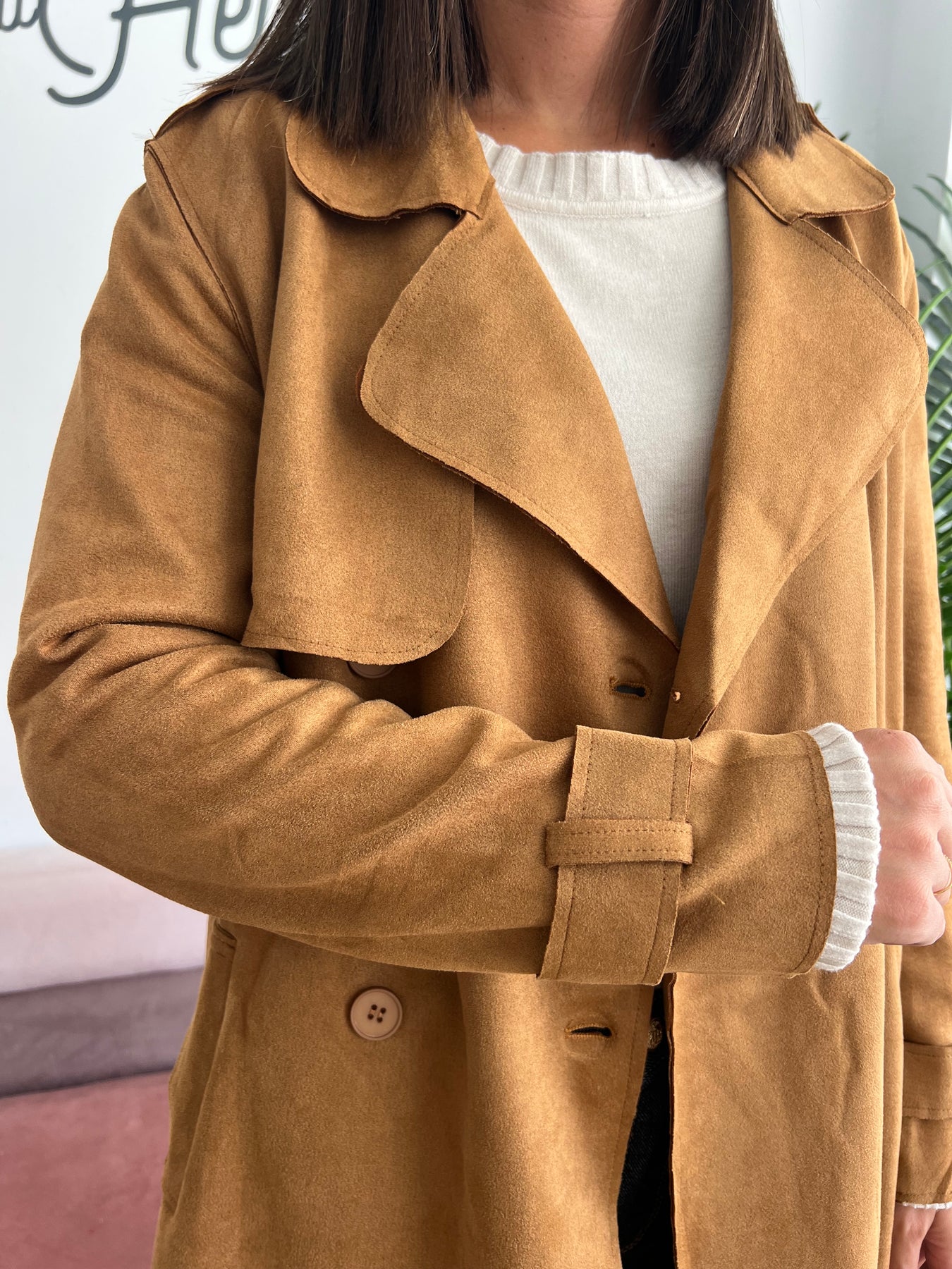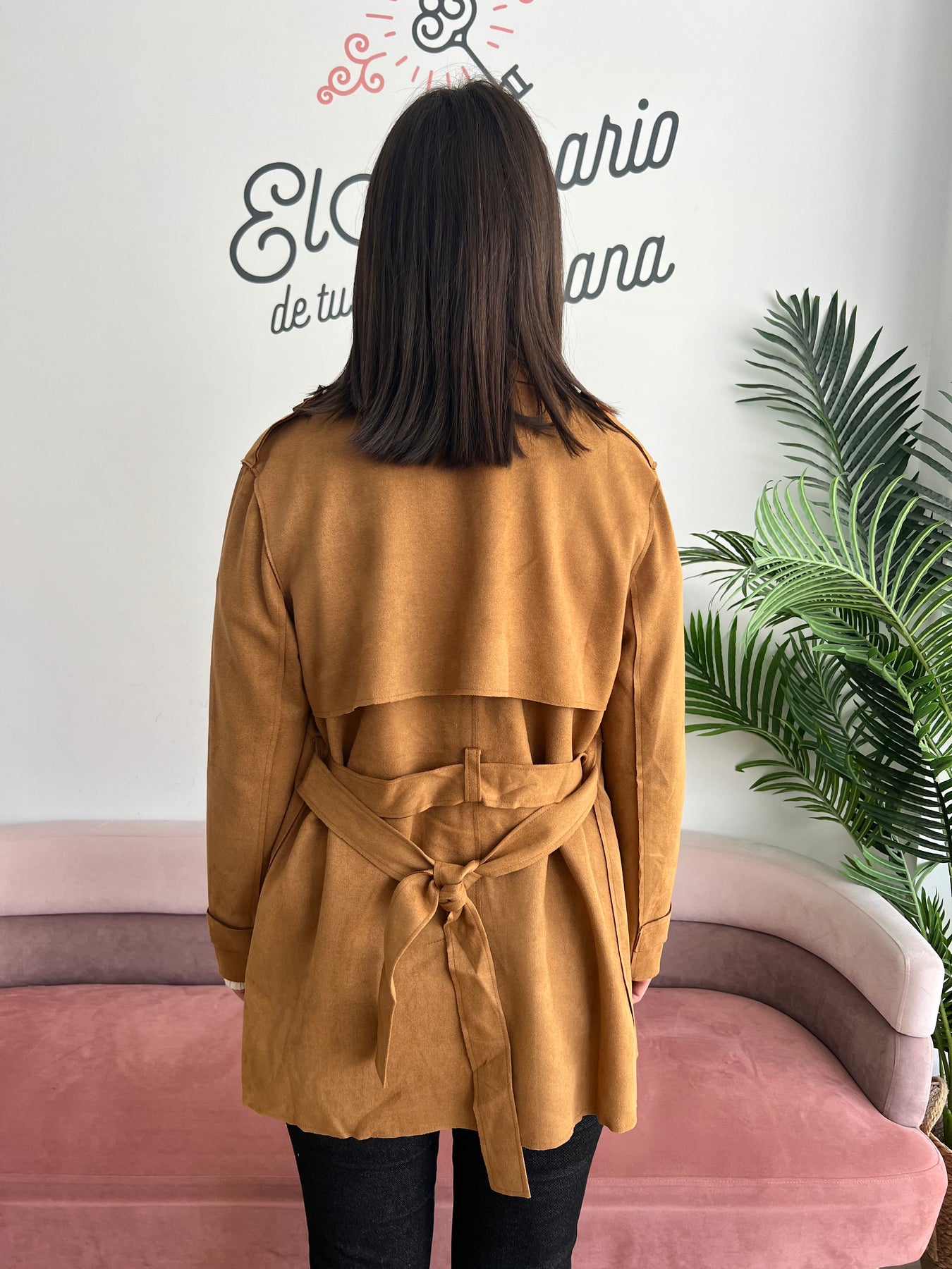 La prenda que nunca pasa de moda y que transforma cualquier look. Esta gabardina en tono camel, con efecto ante suave al tacto, es un básico elegante y versátil que no puede faltar en tu armario.