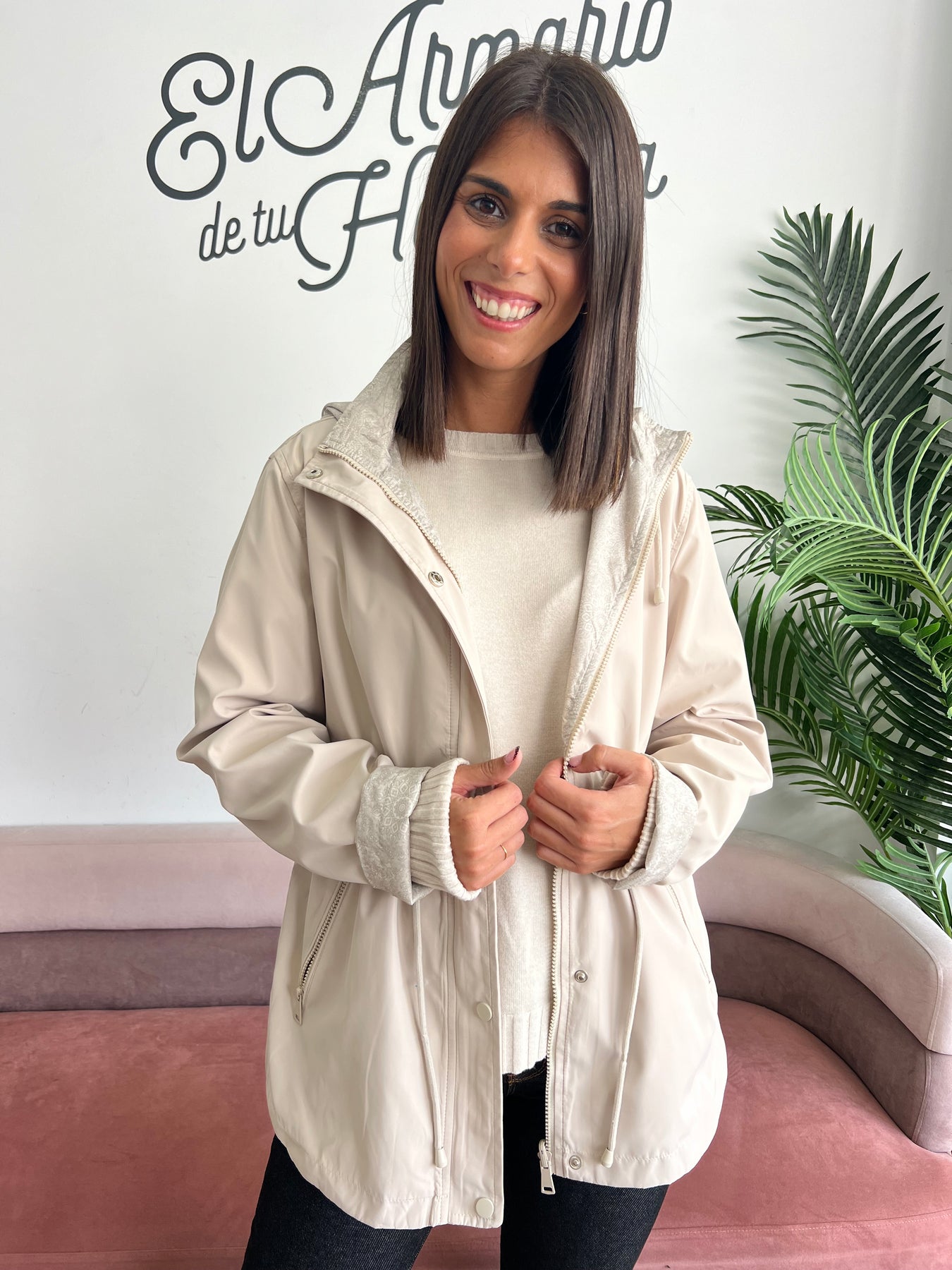 Cuenta con bolsillos laterales prácticos, cremallera frontal y cordón ajustable para entallar a tu gusto. Es ligera, cómoda y perfecta tanto para looks casual como para dar un toque más chic. Además el gorro se puede poner o quitar a través de una cremallera.