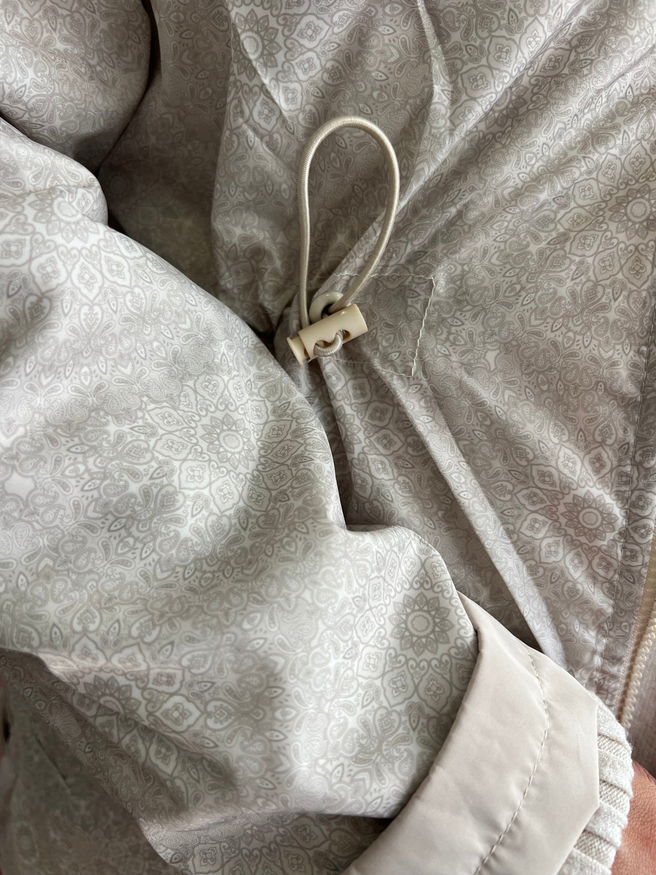 Esta chaqueta es de esas prendas que siempre salvan cualquier look porque tienes dos en uno. Por fuera luce en beige liso con detalles en cuerda del mismo color, y por dentro sorprende con un forro de estampado mandala, que además puedes dejar ver al darle la vuelta o doblar los puños.