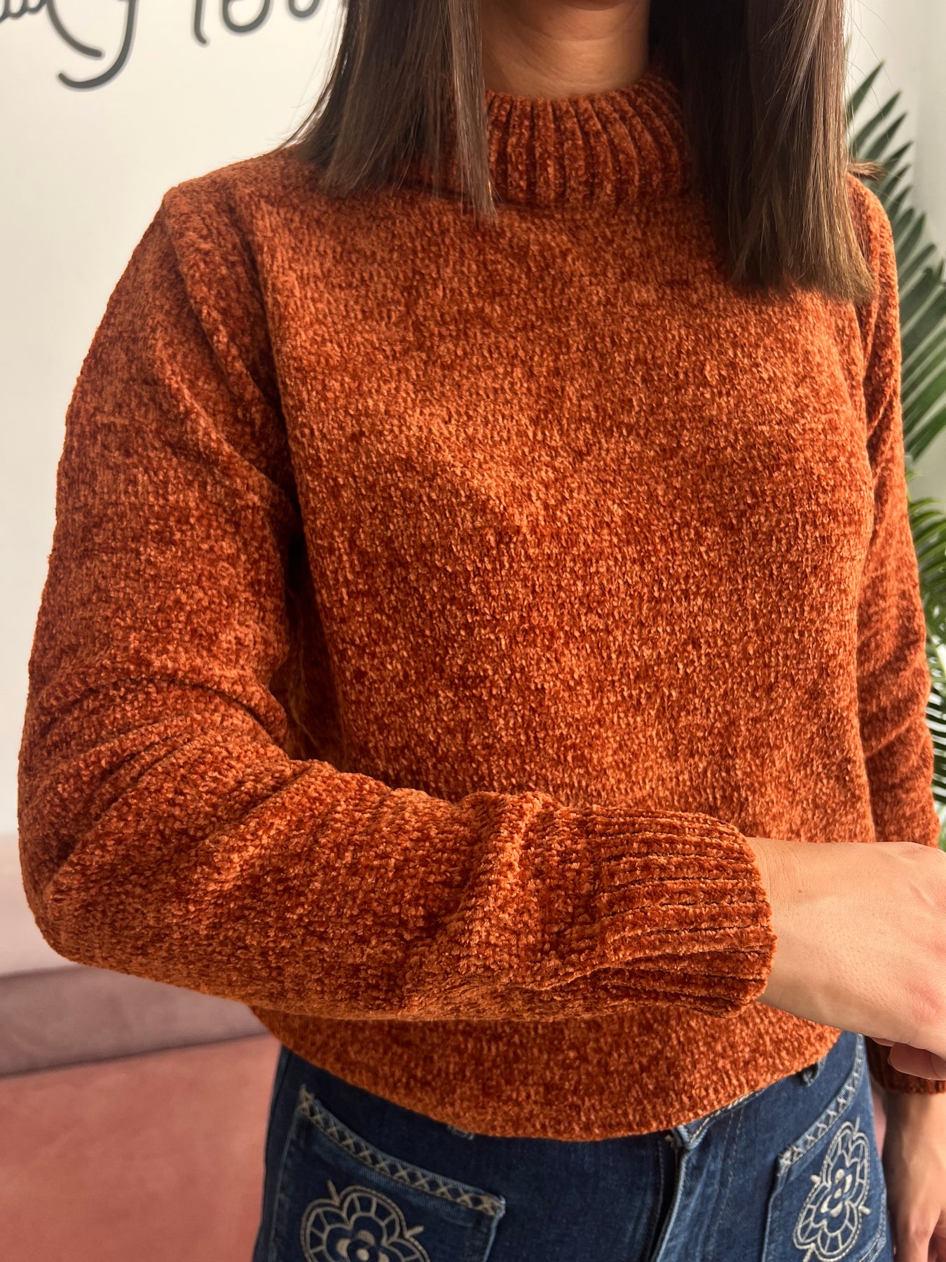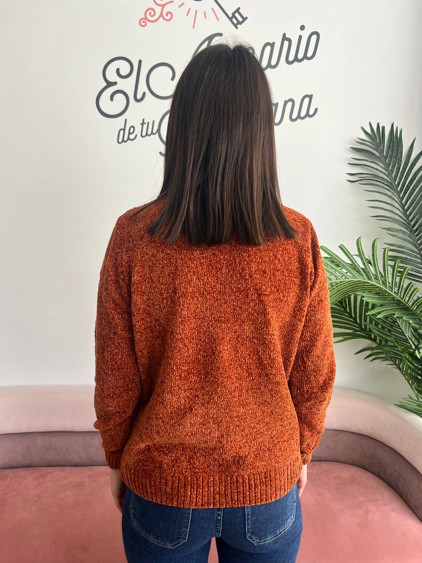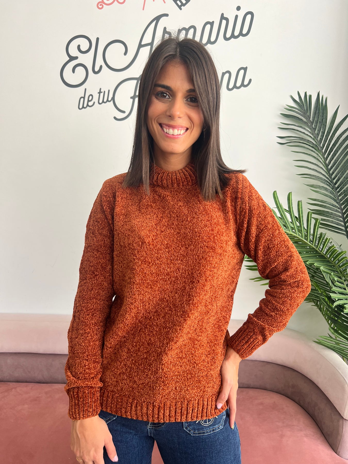Confeccionado en chenilla ultra suave, su tono favorece a todas y combina genial con vaqueros, faldas midi o incluso encima de un vestido. Tiene un punto mullidito y esponjoso, que además de calidez, le da ese aire gustoso que dan ganas de estrenar en cuanto llega el primer fresquito 🍁